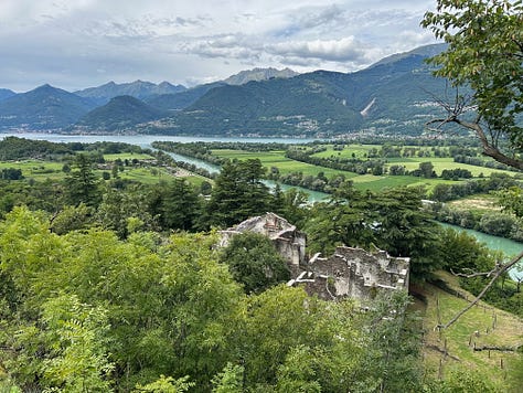 Another day, we hiked nearly 1,000 feet (300+ meters) up nearby Monte Legnone to La Torre Ed Il Borgo di Fontanedo, a medieval tower and village last occupied in the 1800s. The origins of this fortified complex date back to the 13th or 14th century.